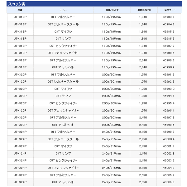 ≪'16年3月新商品!≫ シマノ オシア スティンガーバタフライ キングスラッシャー JT-320P 200g/203mm 01T フルシルバー 【4個セット】